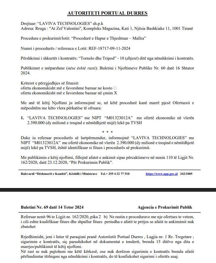 | Procuring Authority / Buyer | Durrës Port Authority | Tender object | Tornelo dhe Tripod | |||