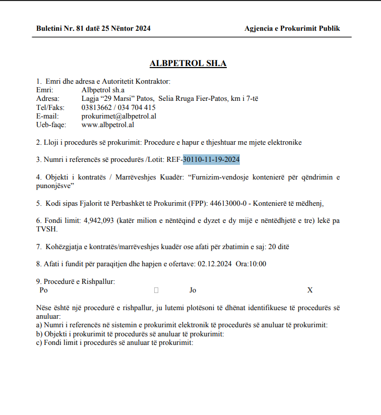Shenime Njoftim Fituesi Buletini Nr. 81 datë 25 Nëntor 2024