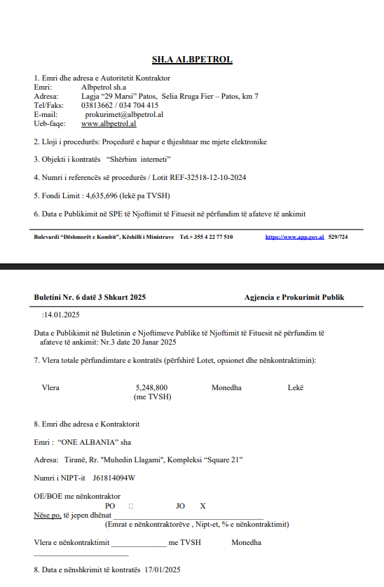 Operatore Konkurues 1. “ONE ALBANIA” sha