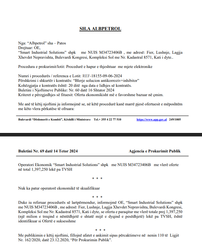 | Procuring Authority / Buyer | Sh.A Albpetrol | ||||