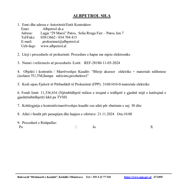 Procuring Authority / Buyer Sh.A Albpetrol