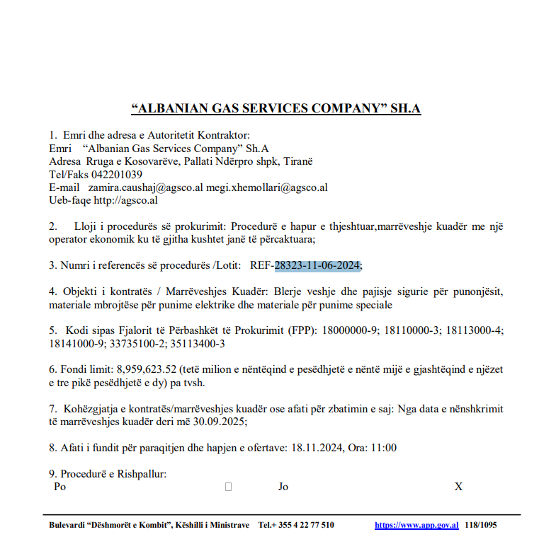 | Procuring Authority / Buyer | Albanian Gas Service Company Sh.a | ||