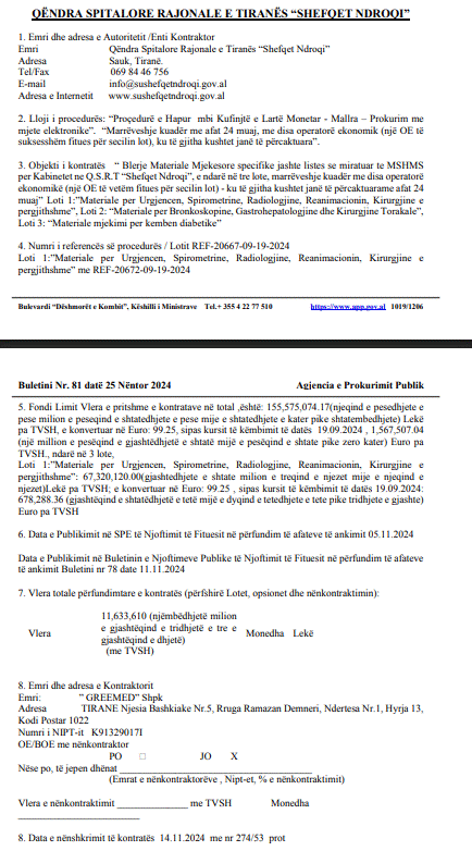 | Data e shpalljes se fituesit | 11-11-2024 | ||||||||||||