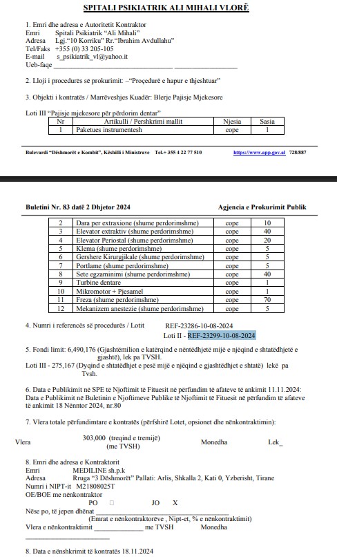 Lidhja e Kontrates Buletini Nr. 83 datë 2 Dhjetor 2024
