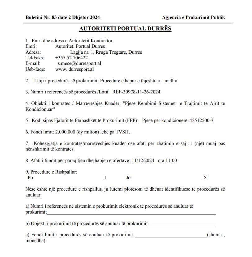 Objekti i Tenderit Pjesë këmbimi sistemet e trajtimit të ajrit të kondicionuar